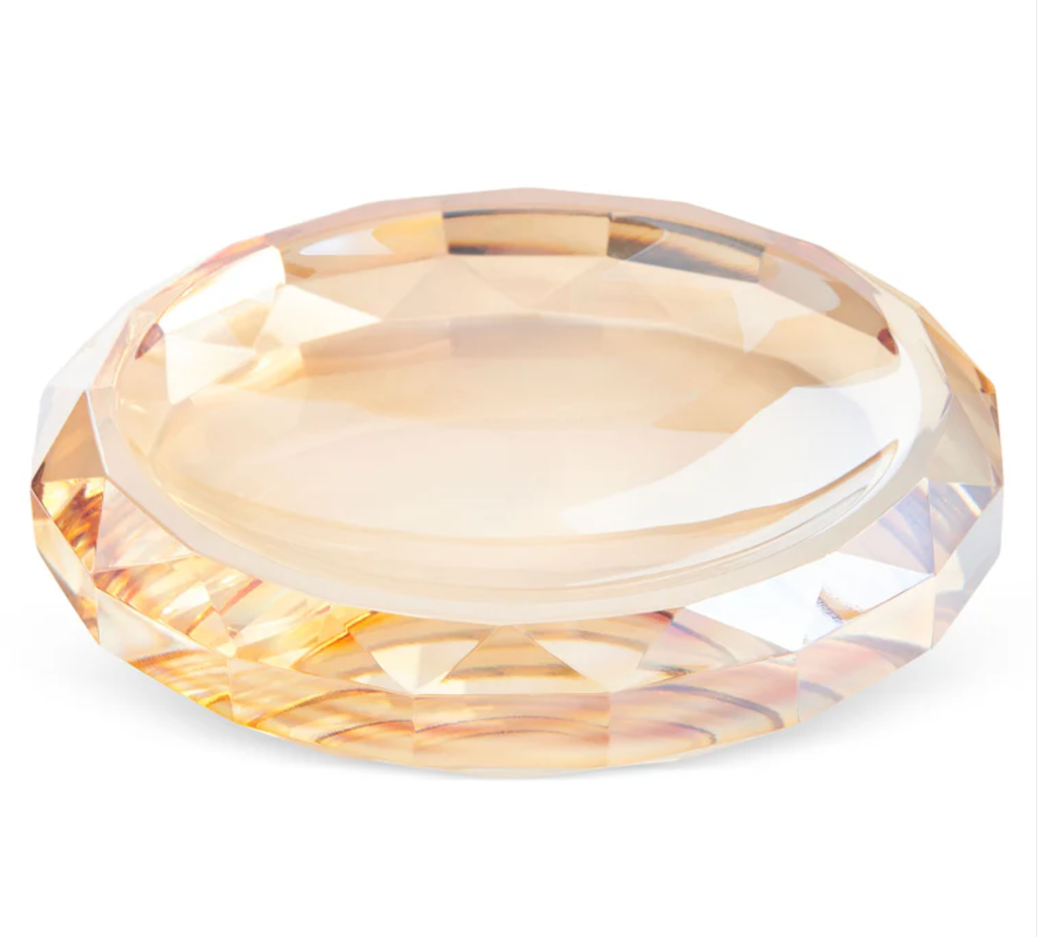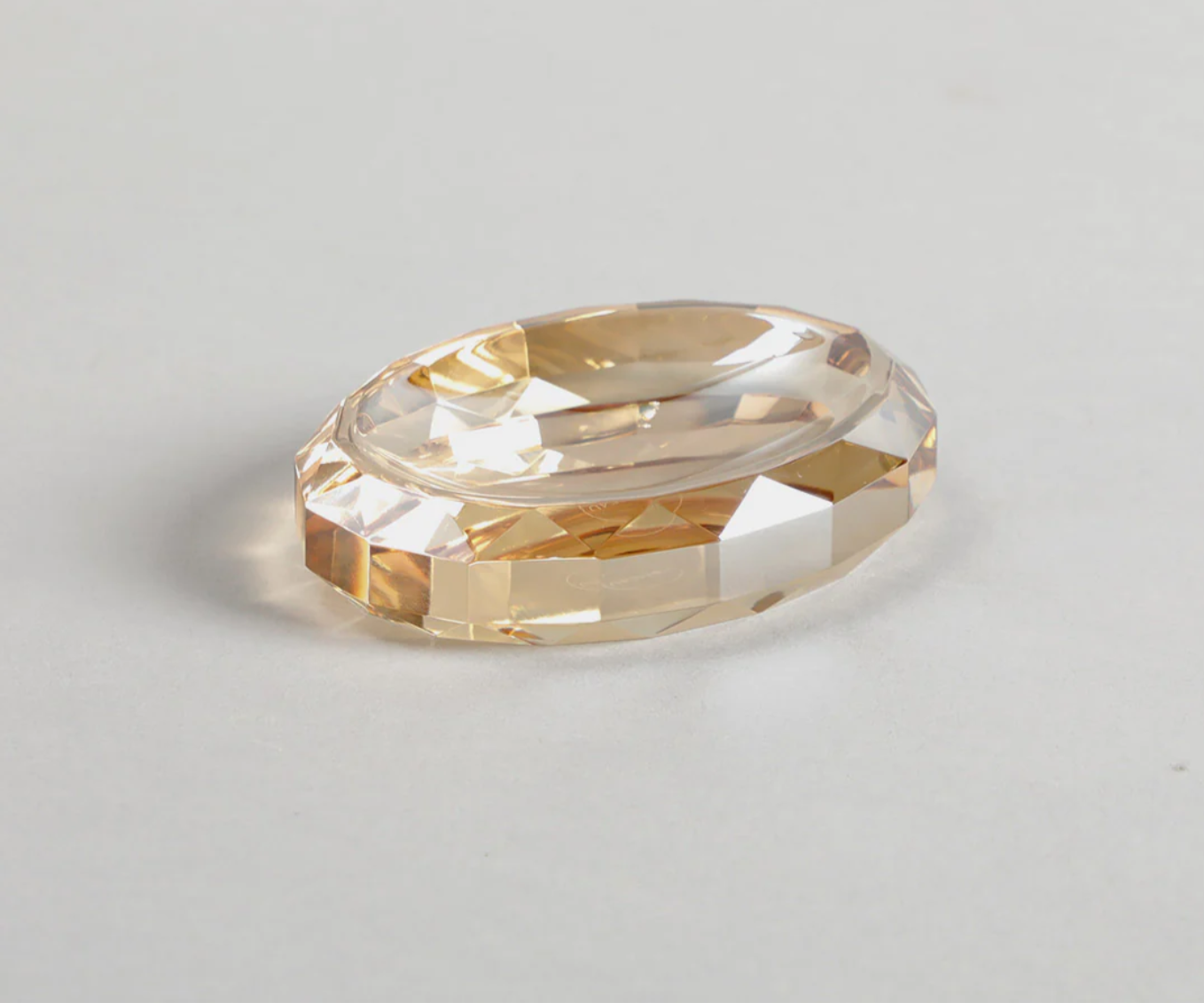 Faceted amber crystal softens the light and grounds one of the most familiar daily gestures. The sculptural form keeps soap visibly present resting calmly, intentionally, exactly where it belongs.