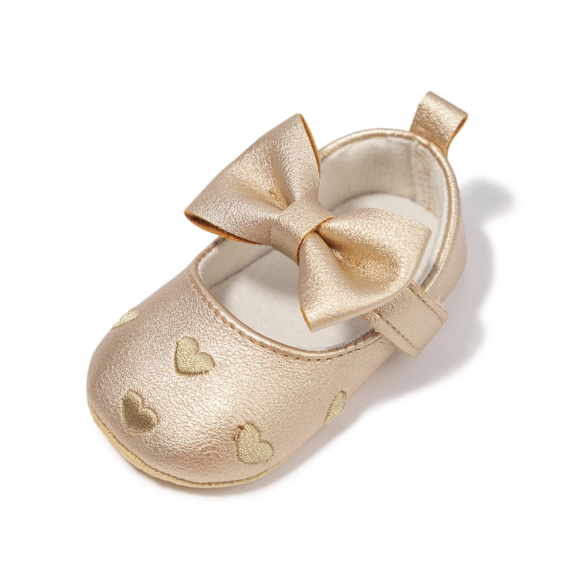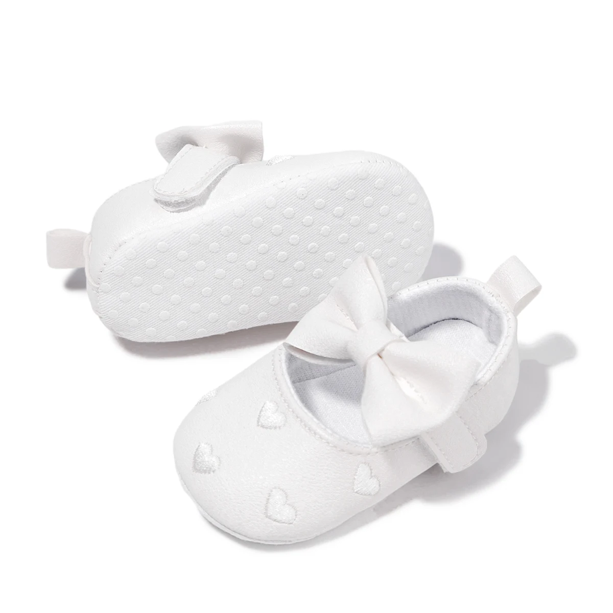 Crafted with a soft, flexible sole and a gentle hook-and-loop closure, these shoes provide stability without restricting natural movement. The charming bow detail and subtle heart motif evoke classic Parisian sweetness, making them perfect for special occasions or refined everyday wear.