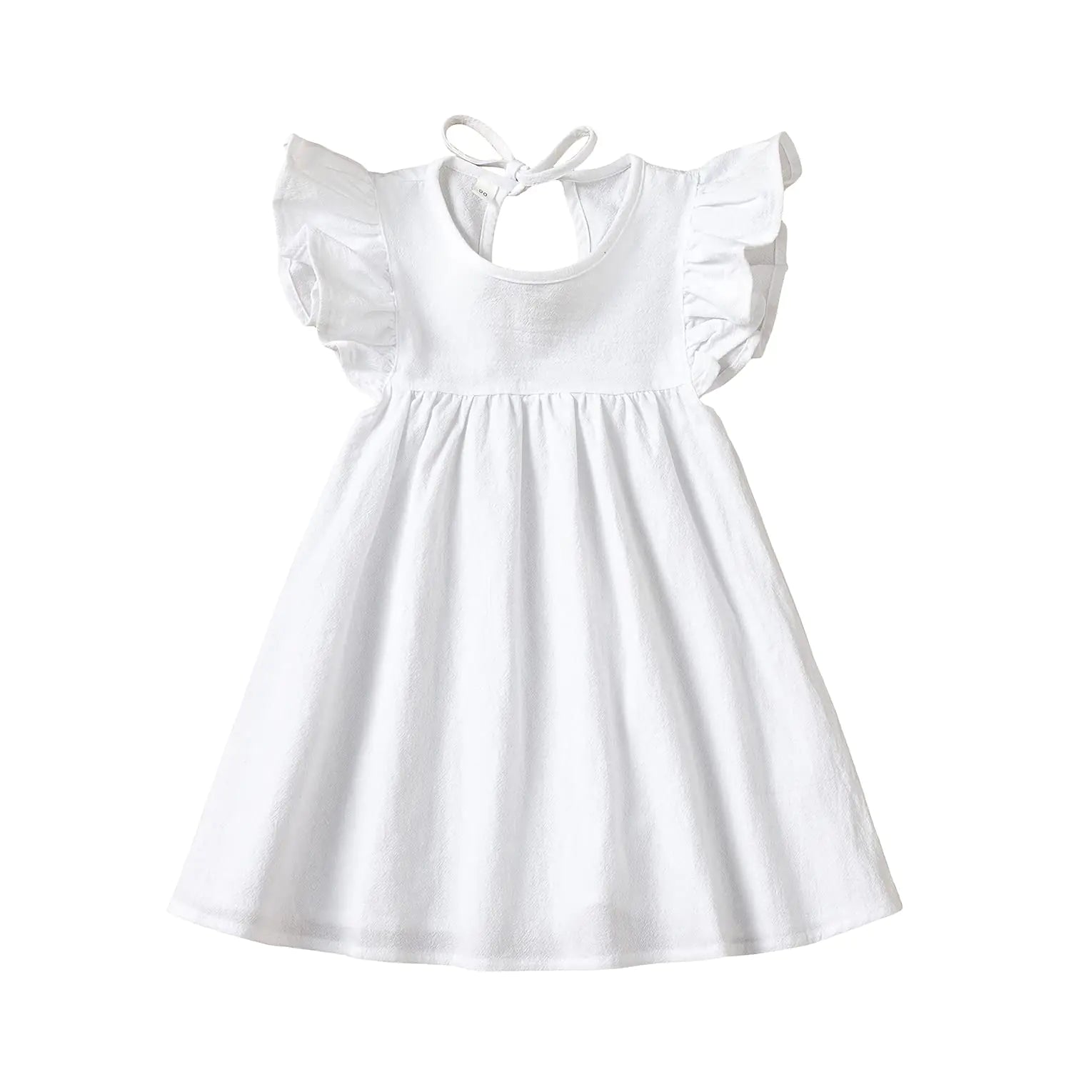 Crafted from soft, breathable cotton, this timeless white dress features delicate ruffled sleeves and a gently flowing silhouette. Light against the skin and easy to wear, it is designed to move comfortably with your child while maintaining a refined, classic look.