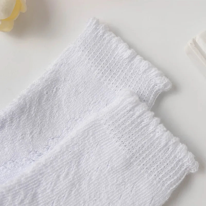 The subtle knit pattern allows air circulation while maintaining a polished appearance—perfect for pairing with dresses, rompers, or classic everyday outfits. Designed for both babies and children, they bring understated sophistication to daily wear.