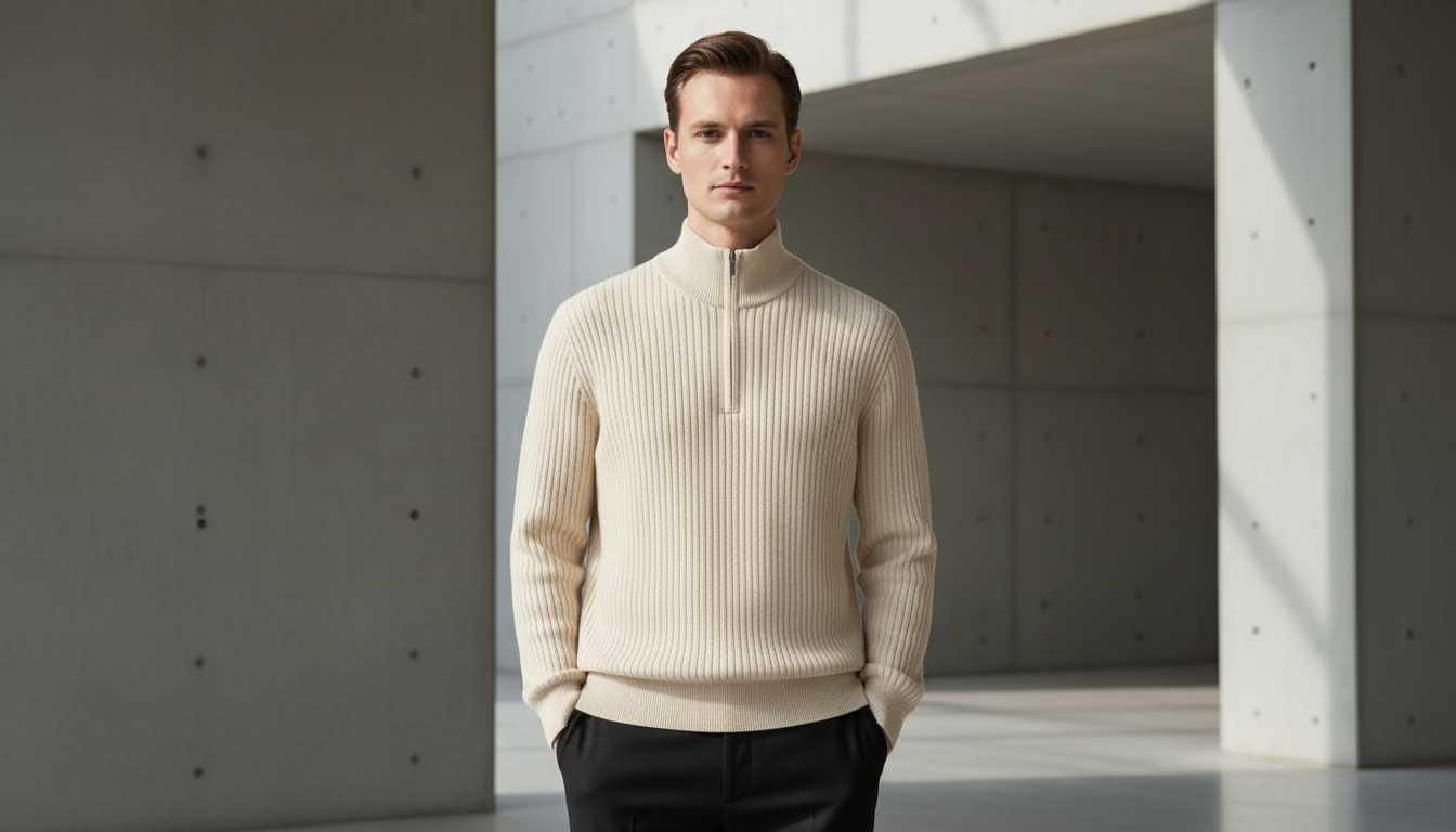 The elevated neckline adds a subtle architectural element, protecting against the cold without compromising elegance. Every detail is restrained, allowing the material to speak for itself.