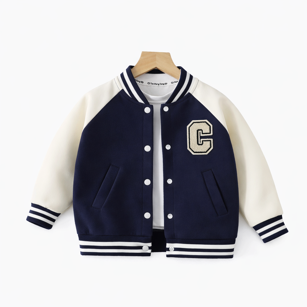 Designed for little icons of style, this refined varsity jacket blends timeless elegance with everyday comfort. A modern classic inspired by heritage silhouettes, crafted for children who move freely yet dress impeccably.