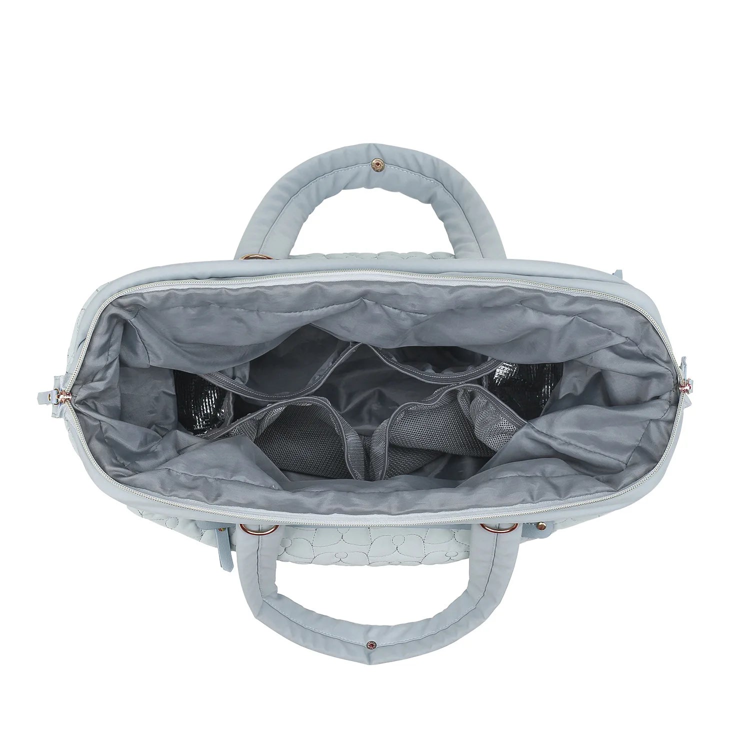 Its softly quilted silhouette, inspired by timeless French elegance, offers generous space while maintaining a graceful, structured Form. Thoughtfully designed compartments keep baby essentials perfectly organised, whether for a short stroll or a full day out.