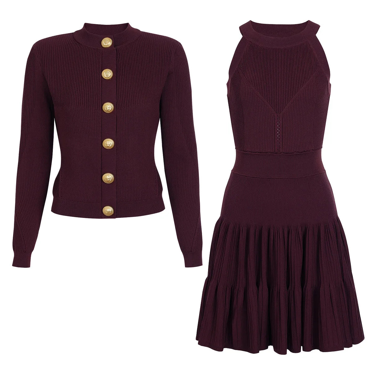 This mini dress is crafted from ribbed pointelle knit, designed to define the silhouette with precision.