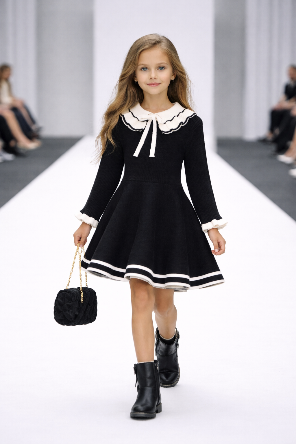 Crafted in a comfortable cotton blend, this knitted dress features a delicate bow detail and a graceful A-line silhouette. Designed for cooler autumn days, it offers warmth without weight, allowing freedom of movement while maintaining a polished appearance.